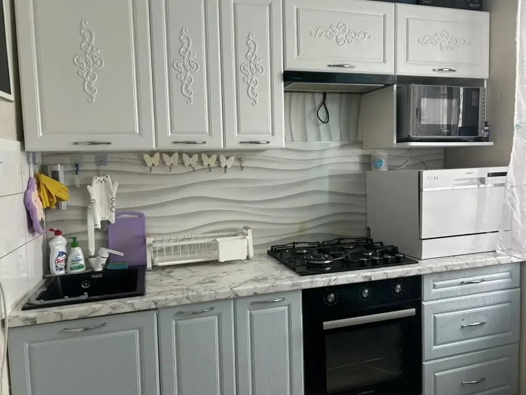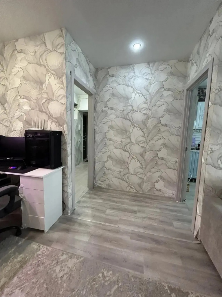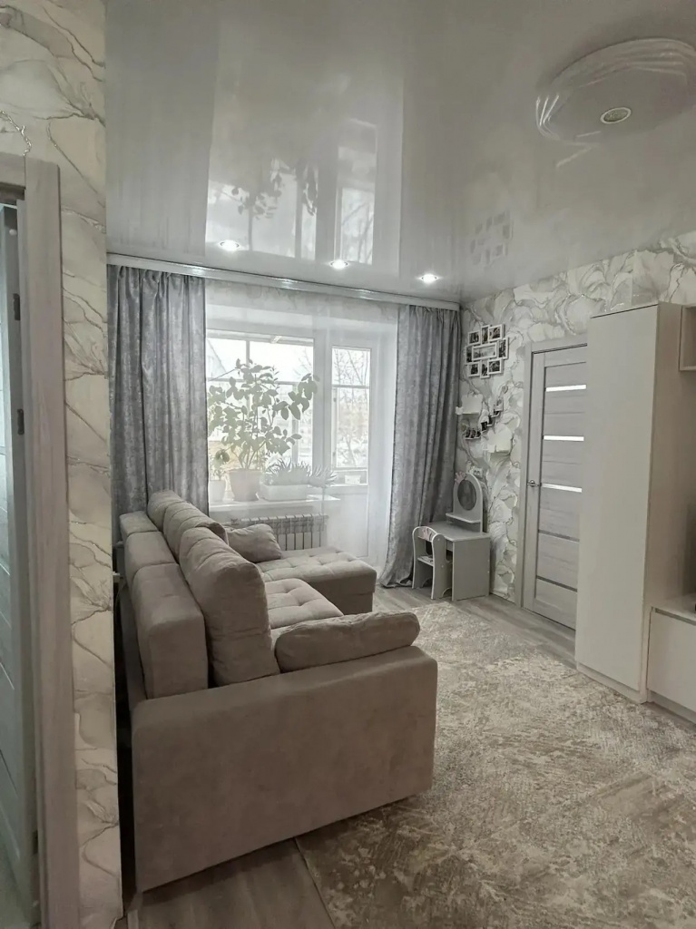 Внутри квартиры выполнен качественный, современный косметический ремонт, благодаря чему новым владельцам не потребуется вкладывать дополнительные средства сразу после покупки. Пласт. стеклопакеты, натяжной потолок, радиаторы отопления, эл. проводка, м/к двери, входная сейф-дверь. Санузел совмещённый, что является удобным решением для экономии пространства, трубы заменены, счетчики установлены, водонагреватель. Остается кух. гарнитур со встроенной бытовой техникой. Есть вместительная кладовка.